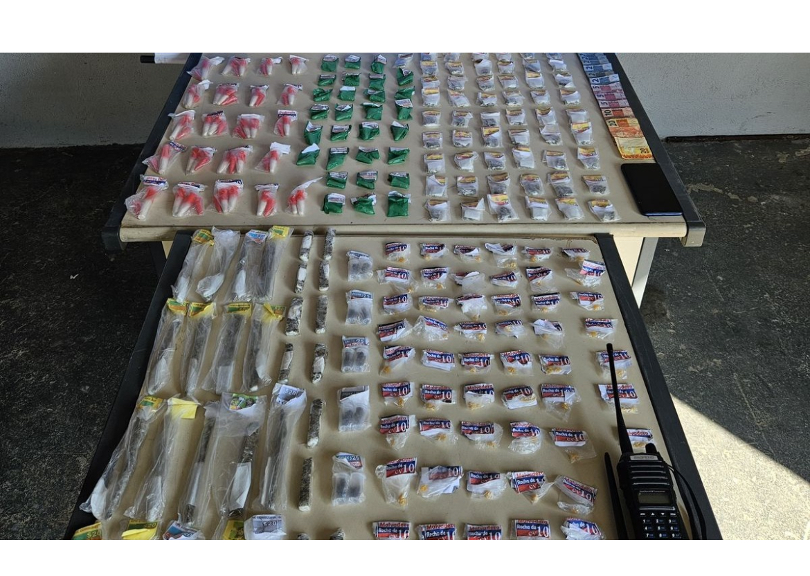Chegando, os agentes encontram o homem e foram apreendidos com ele: 87 tiras de maconha, 62 pedras de crack, dez skank, três rádios de comunicação, um celular e R$ 59 em espécies. Todo material e o suspeito foram levados para a delegacia.