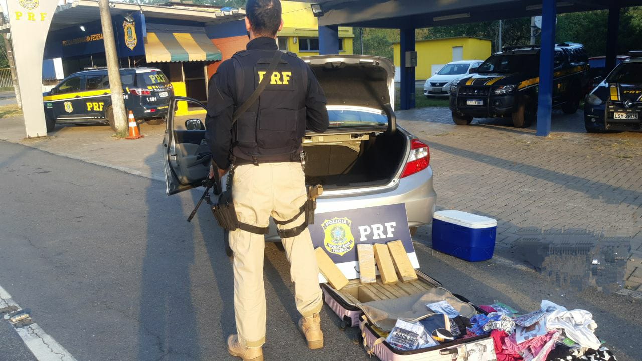 Assim, os agentes começaram a fazer a revista na bagagem do casal. Dentro de uma mala, foram encontrados 19 tabletes de maconha. De pronto, o aniversariante do dia assumiu que a droga era sua.