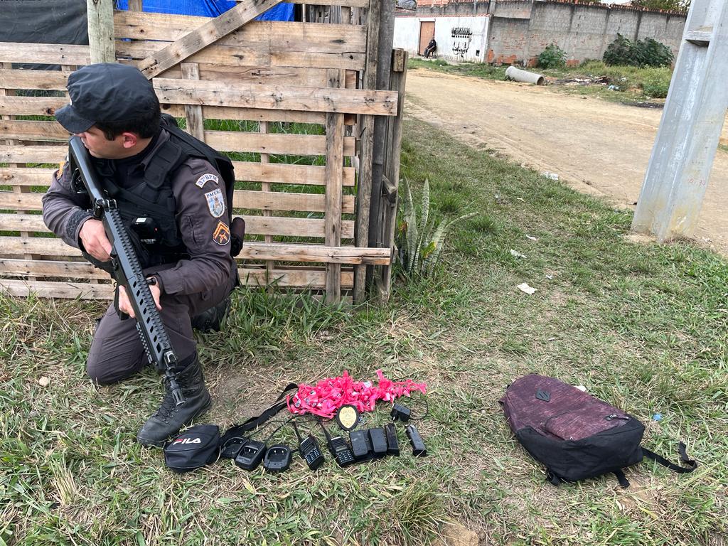 Uma operação da Polícia Militar terminou com apreensão de drogas, munições e materiais do tráfico de drogas em Resende. O fato ocorreu na Rua 31, no bairro Morada da Barra. Os policiais militares foram ao endereço após uma denúncia dando conta que um traficante foragido estaria escondido no local.