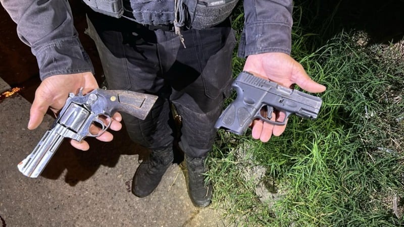 Foram apreendidos no local um revólver e sete munições calibre 38 milímetros, uma pistola e 34 munições calibre nove milímetros, três carregadores, 385 cápsulas de cocaína, 11 skank, 38 embalagens com loló, 103 tiras de maconha, 238 pedras de crack, três celulares e R$ 97 em espécie.