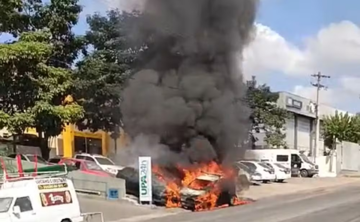 O fogo começou em um veículo, que estava parado próximo a um estacionamento entre a delegacia e a Unidade de Pronto Atendimento (UPA) da cidade. As chamas se alastraram e atingiram outros três carros estacionados.