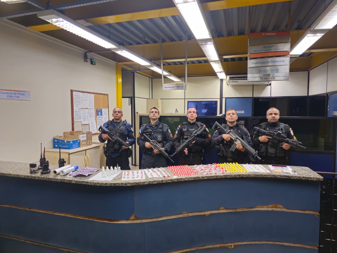 Os três detidos confessaram pertencer à facção criminosa Comando Vermelho (CV) e foram conduzidos à 90ª Delegacia de Polícia, onde foram autuados com base nos Artigos 33 e 35 da Lei 11.343/06 (Lei de Drogas), que tratam do tráfico e associação para o tráfico de entorpecentes.