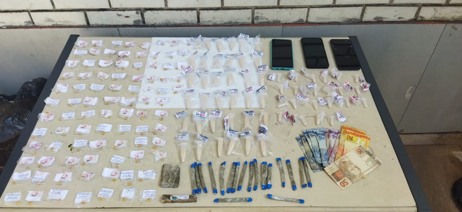 Chegando, os agentes conseguiram deter o trio. Com eles, foram apreendidas 89 pedras de crack, 58 pinos de cocaína, 20 tiras de maconha, três celulares e R$ 114 em espécies. Os suspeitos, os materiais e as drogas foram levados para a delegacia de Volta Redonda, onde o caso foi registrado.