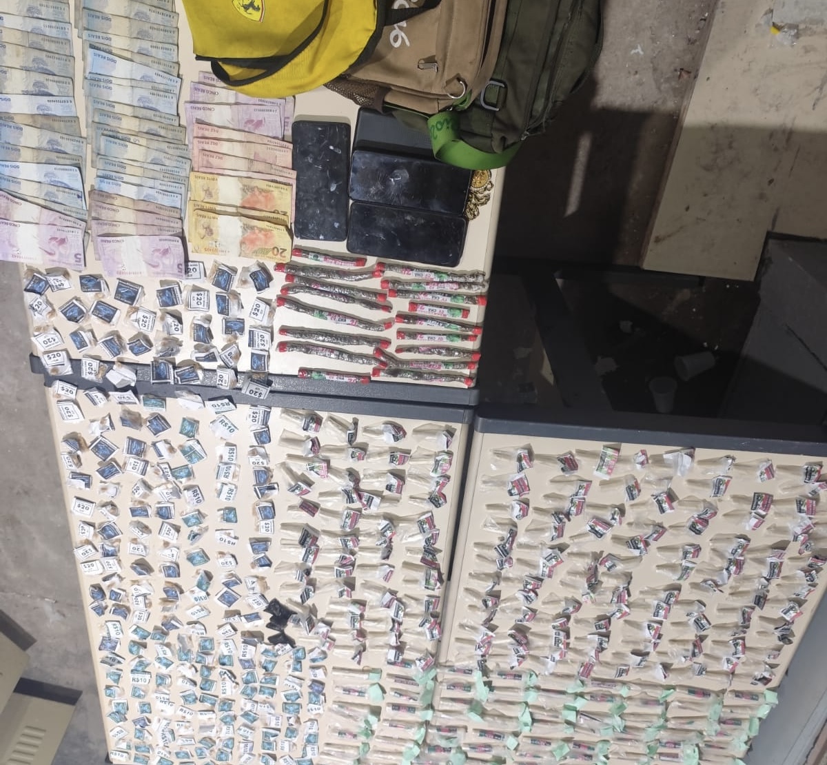 Eles foram flagrados com tabletes pequenos de maconha, tiras da mesma droga, pinos e tubos de cocaína, além de sacolés contendo crack. Dinheiro e celulares dos suspeitos também ficaram apreendidos.