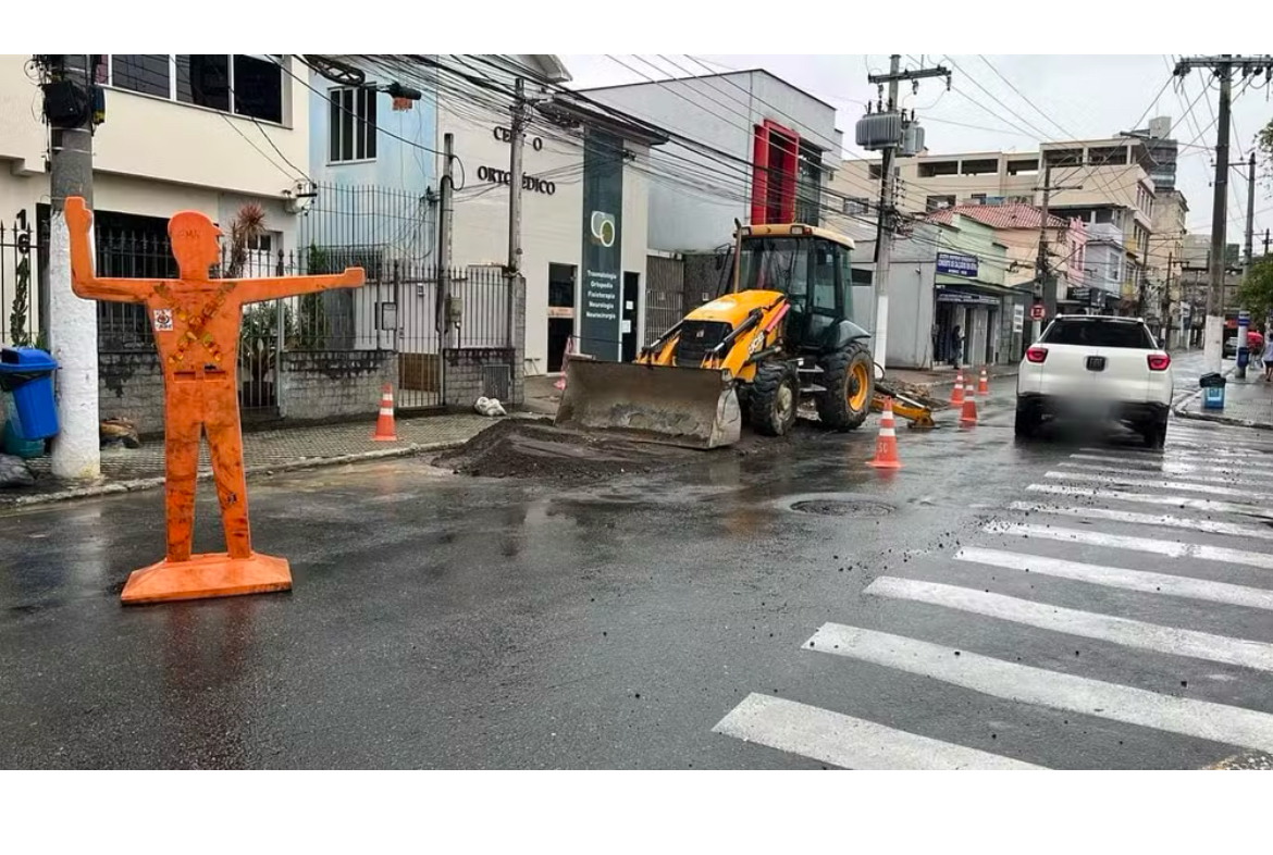 O problema aconteceu durante uma obra de drenagem do Serviço Autônomo de Água e Esgoto (Saae) de Barra Mansa na Rua Pinto Ribeiro, no Centro.