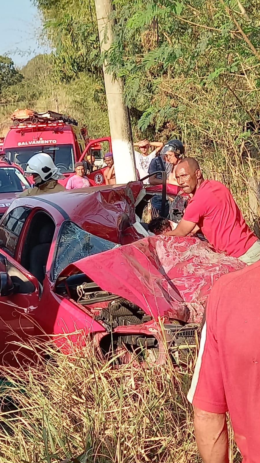 Segundo o Corpo de Bombeiros, no momento desta publicação, o ônibus se encontrava atravessado na pista, enquanto o carro, bastante danificado, estava na lateral da estrada.