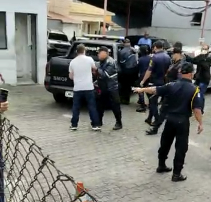 Pelas imagens, um dos guardas diz a uma manifestante que a levaria para a delegacia e começou a agarrá-la, o que causou revolta entre os manifestantes.