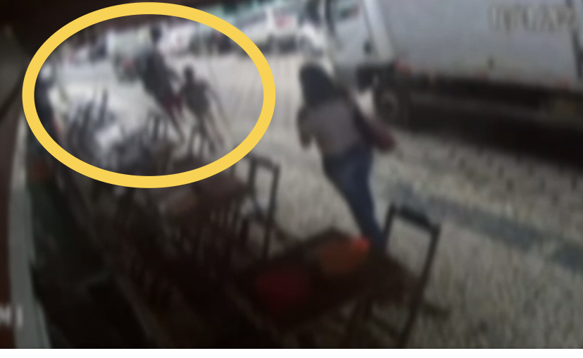 O suspeito, que não conhecia a vítima, sai correndo e empurra o menor, que cai no chão. O menino foi ajudado por pessoas que passavam no momento e assistiram à cena.