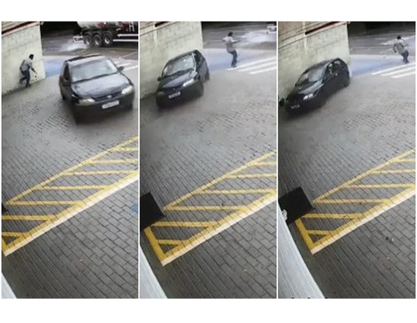 Um homem quase foi esmagado por um carro desgovernado que trafegava na avenida Ernani Pires Domingues, em São José do Rio Preto (SP), na manhã deste sábado (5).