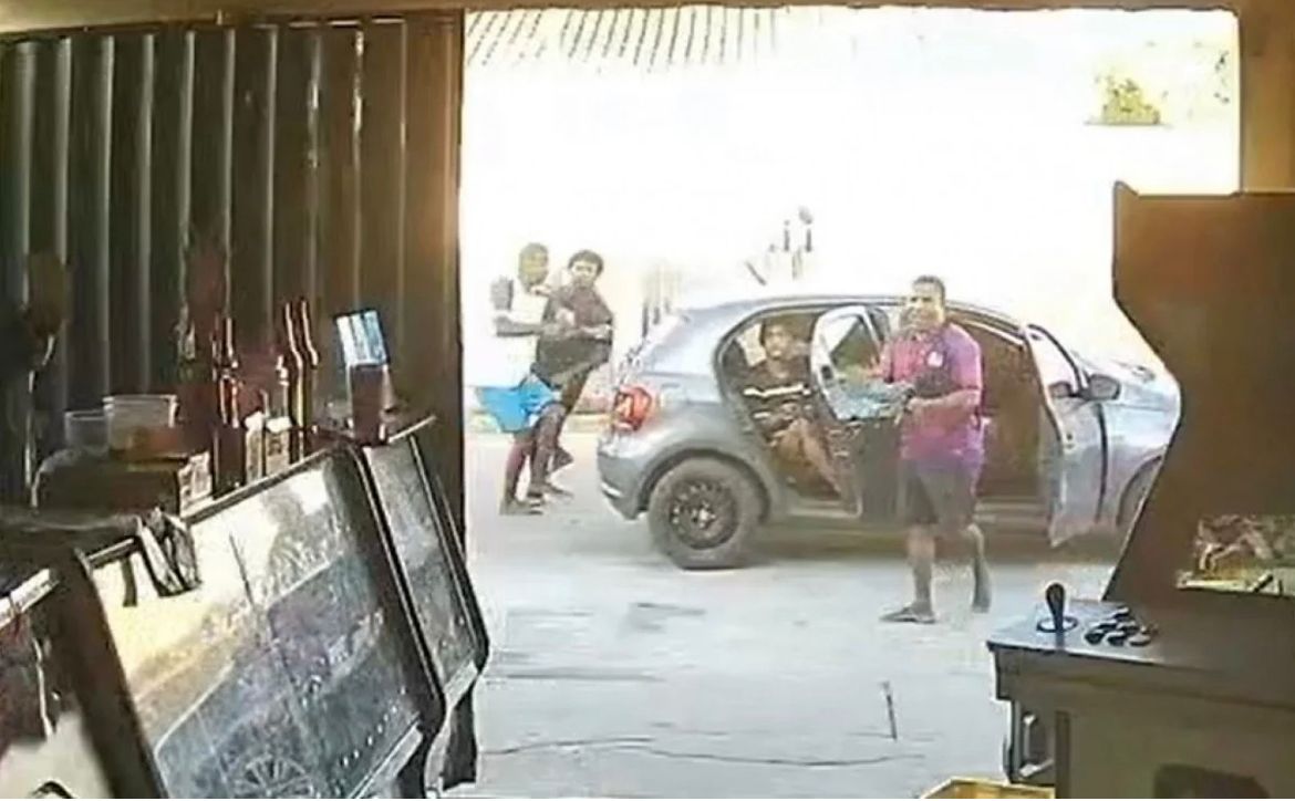 Nas imagens é possível ver o momento em que um carro com cinco criminosos armados se aproxima do estabelecimento e atira diversas vezes na direção das vítimas. Em seguida, eles voltam para dentro do veículo e fogem.