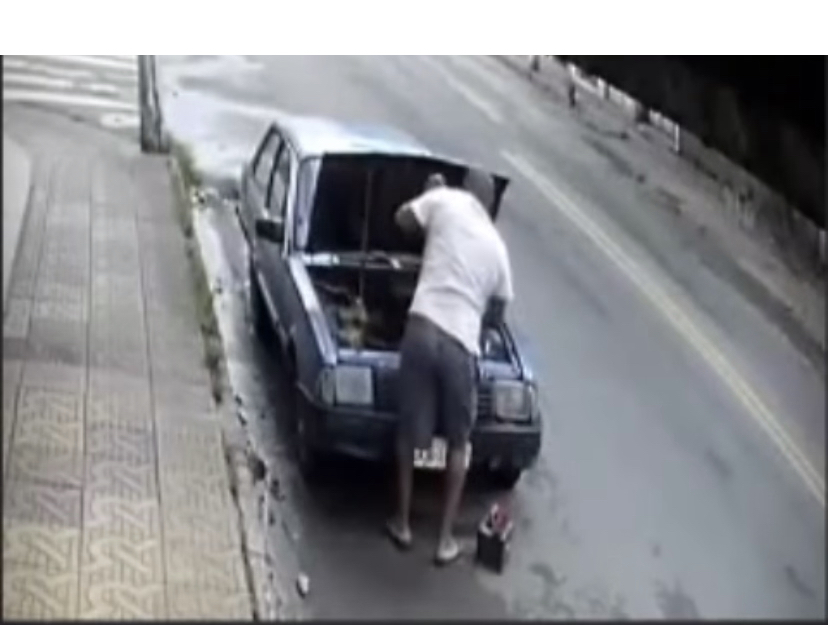 Câmera de segurança flagrou a ação de um homem que furtou peças de carro (Chevette) em Volta Redonda. O veículo estava estacionado na Avenida Maria Cecília, no Retiro.
