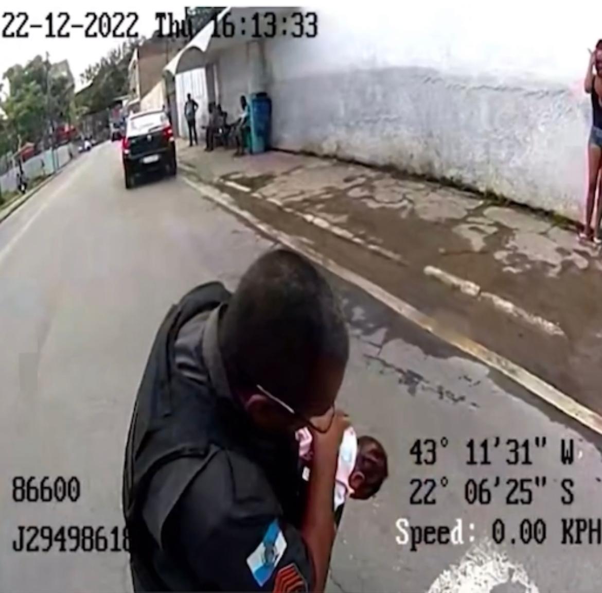 Um policial militar salvou uma recém-nascida engasgada em Três Rios (RJ). O caso aconteceu na quinta-feira (22), mas o vídeo do momento do socorro ganhou repercussão nesta segunda-feira (26).