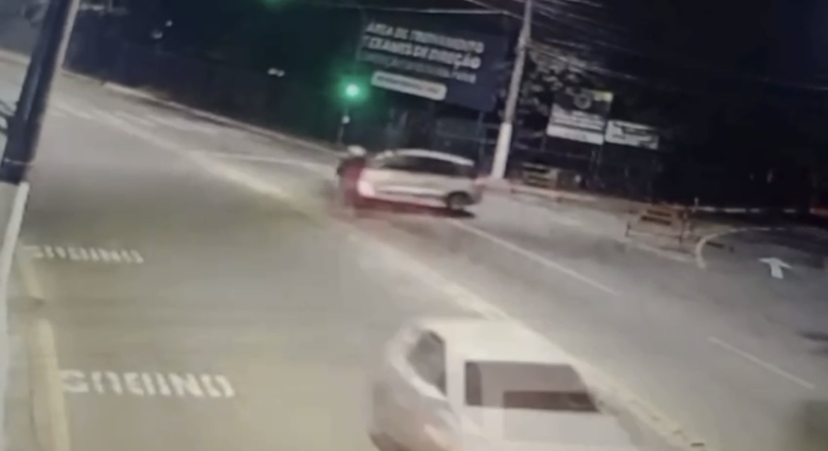 Pelas imagens, o carro iria fazer o retorno quando, na via principal, vinha a moto que atingiu a parte de frente do veículo de passeio. Logo em seguida, o carro deu ré – dando o indicativo que iria fugir. Porém, outro motociclista fechou a saída do carro.