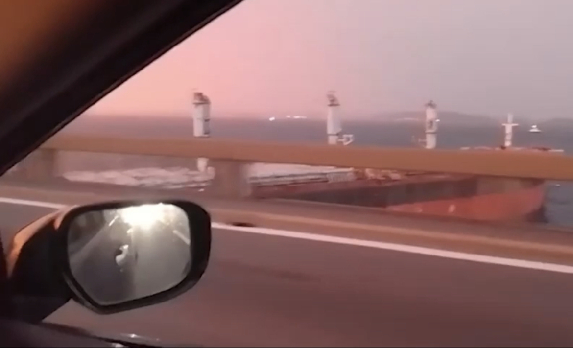 “Começou um vento muito forte na ponte (…) Foi aí que eu vi o navio e achei que ele ia passar direto. Mas, pela altura, logo eu pensei que estava estranho e que não ia passar (…) A parte alta bateu forte na ponte. Na hora, meu telefone caiu no chão. Chegou a balançar a ponte. Balançou muito. O carro quase sai de uma faixa e vai para a outra.”