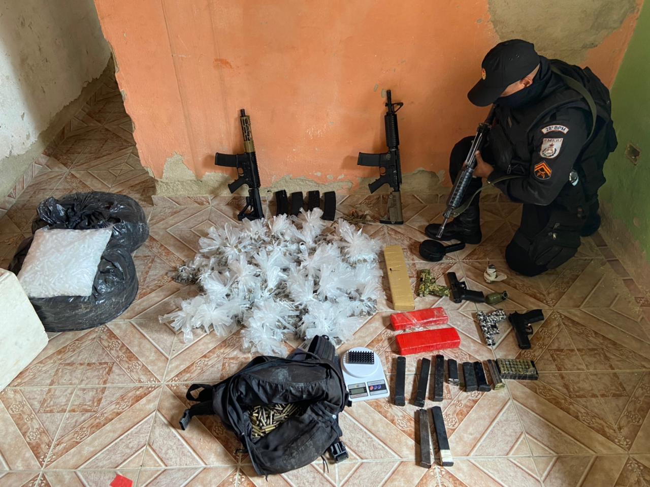 Os policiais receberam a informação e foram até o bairro. Os agentes conseguiram apreender o material num imóvel. Havia grande quantidade de entorpecente e munições. A ocorrência ainda está em andamento.