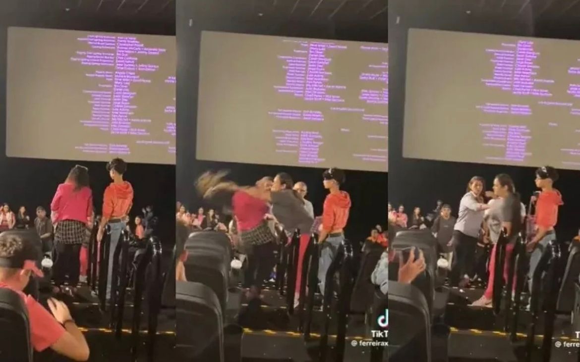 “Mano, o empurrão”, escreveu uma pessoa no Twitter. “Inspiradas pela sororidade do filme”, ironizou outra pessoa. “E tudo isso depois dessas cacuras assistirem a duas horas de filme que trata sobre a união entre mulheres e feminismo”, lamentou outro usuário.