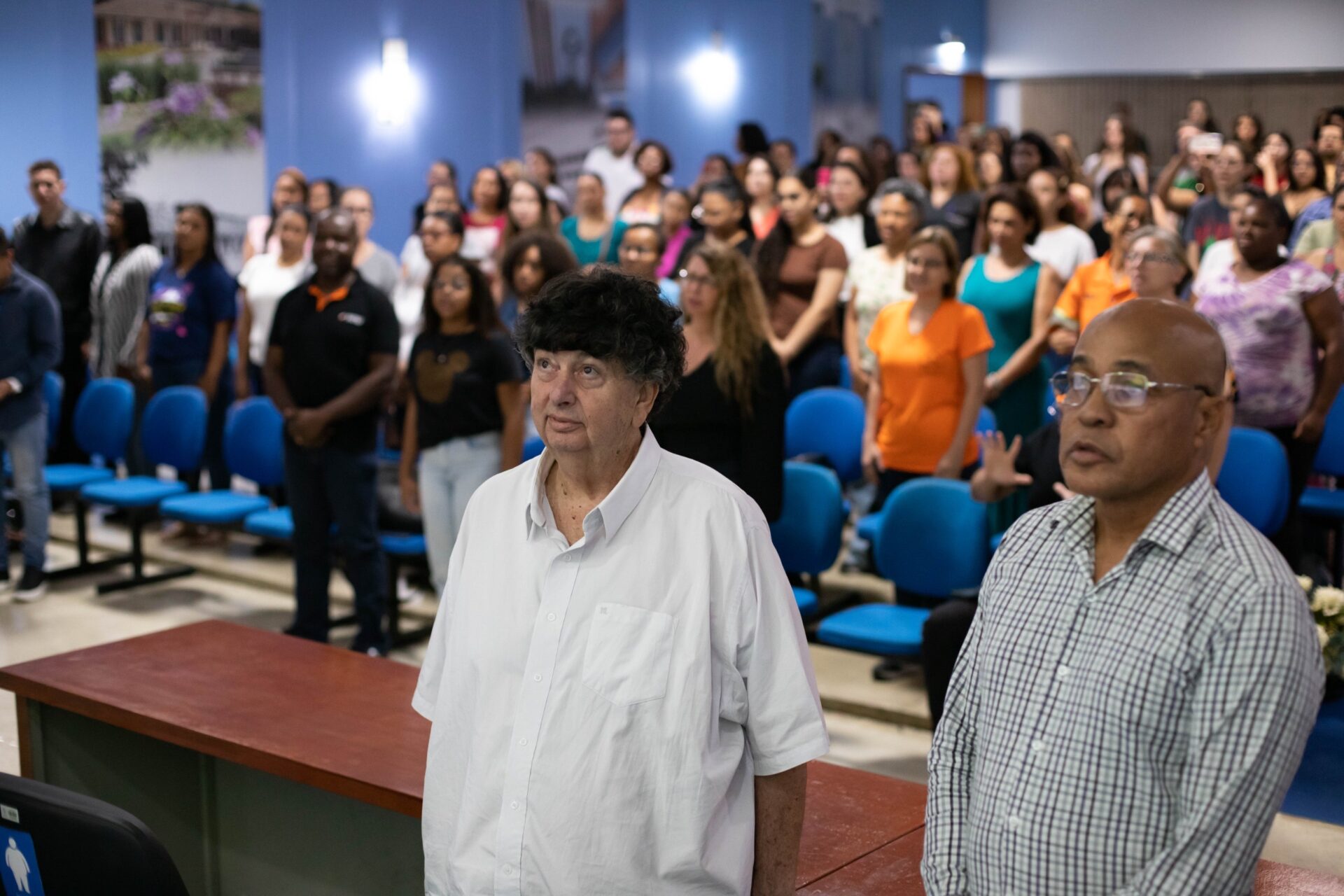 A professora Sandra foi a primeira a conversar com os alunos. “É um sonho ver esse auditório lotado. Começamos a ofertar o curso de Libras em 2021 e apenas 30 pessoas se inscreveram. Neste ano, foram cerca de 500 alunos inscritos. Agradeço ao prefeito Neto (prefeito de Volta Redonda, Antonio Francisco Neto) por proporcionar esse curso gratuito e de qualidade para a população”, disse.