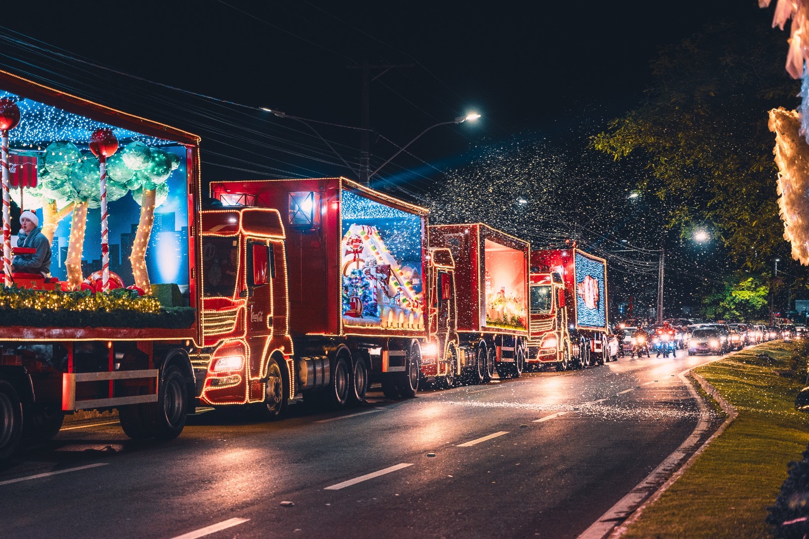 Este ano, a passagem da Caravana de Natal da Coca-Cola continuará pelos principais centros comerciais, a previsão é que todo o trajeto seja concluído em duas horas.