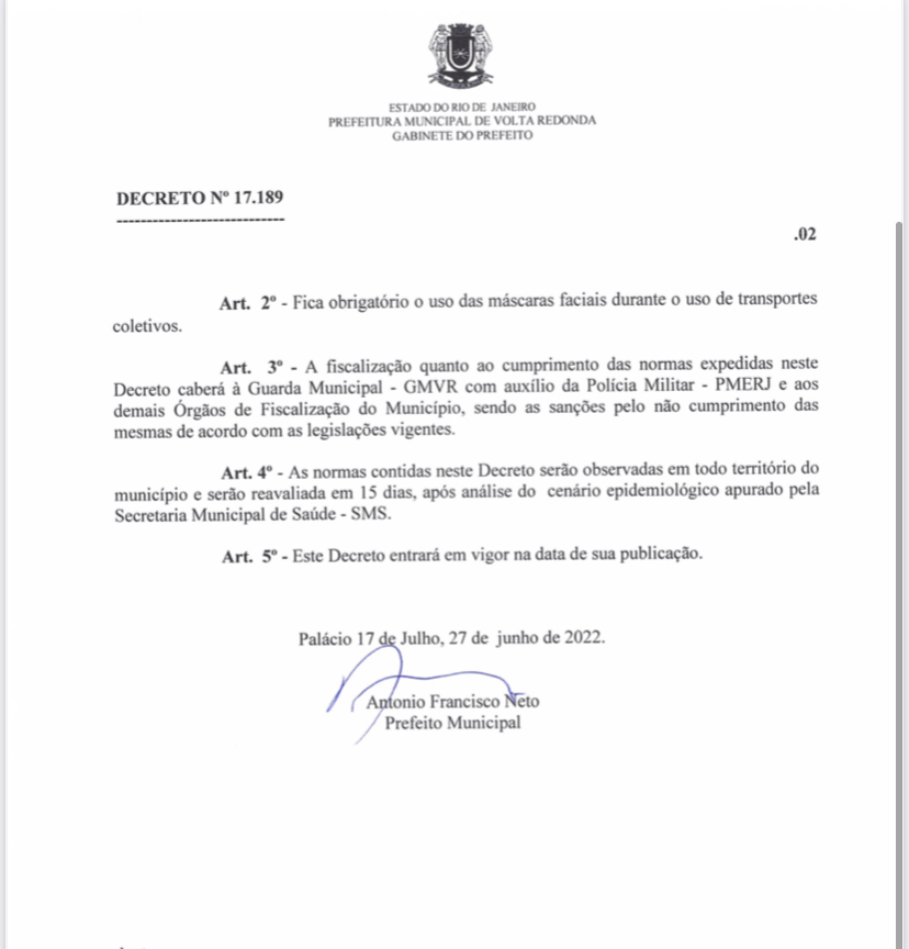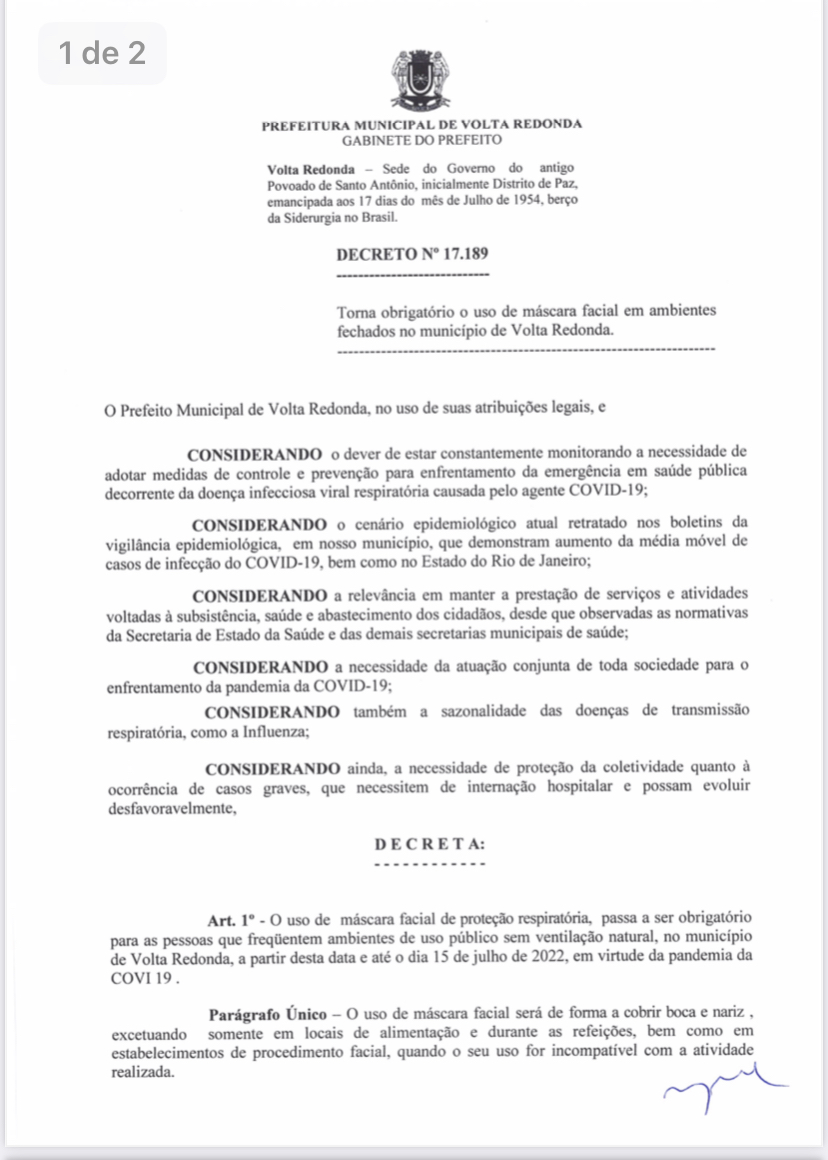 Para ampliar a proteção contra a Covid-19, a Secretaria Municipal de Saúde (SMS) decidiu estender o público-alvo para receber a 4ª dose (o segundo reforço) em Volta Redonda. Além disso, a Prefeitura emitiu nesta segunda-feira (27) decreto retomando o uso obrigatório de máscaras faciais em locais sem ventilação natural (ver anexo).