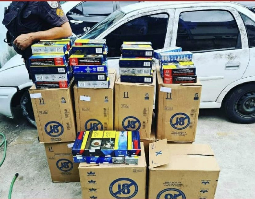 O carro, com toda a mercadoria roubada, sendo 5,2 mil maços de cigarros de diversas marcas e seis pacotes grande fumo de cigarro, acabou batendo em um poste na esquina da Avenida Sávio Gama.
