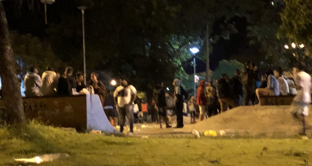 A praça virou um pista de dança, num evento intitulado pelos frequentadores como “bloquinho”. Os sons vinham dos carros e as bebidas eram trazidas de casa.