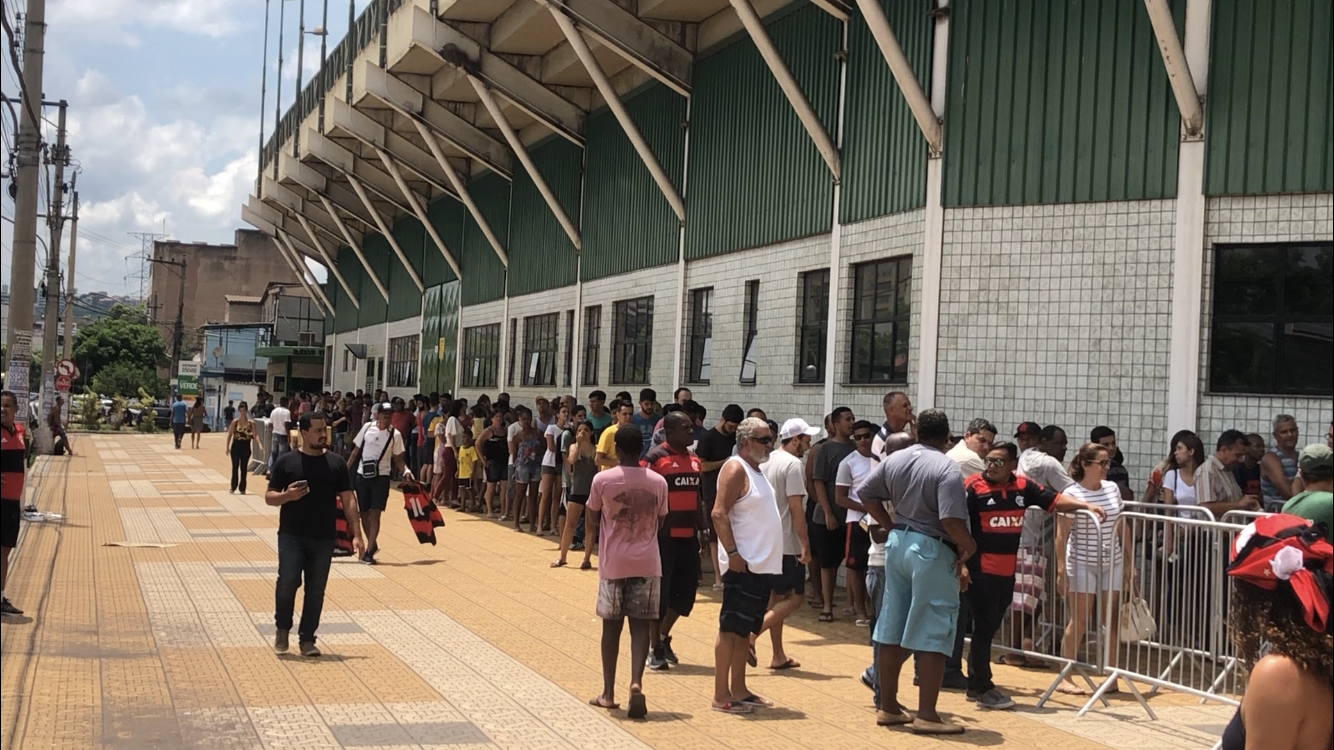 Longas filas foram formadas na manhã desta quarta (23) para a compra do ingresso para o jogo entre Flamengo e Resende. A partida acontece às 19h15, no Estádio Raulino de Oliveira, em Volta Redonda.